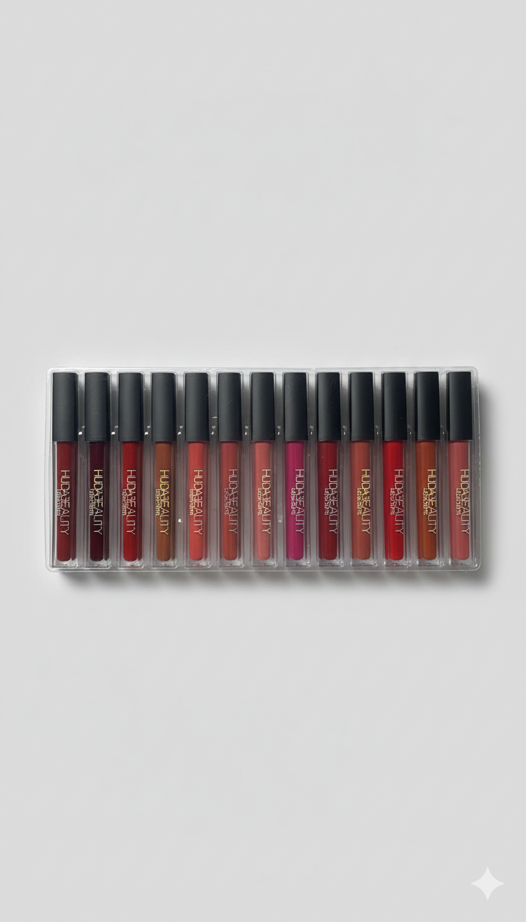 Huda Beauty Matte Lip Gloss- 12 -Piece Liquid Gloss Collection.